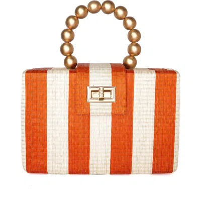 The Orla Woven Straw & Wooden Bead Statement Clutch Bag In Neutral