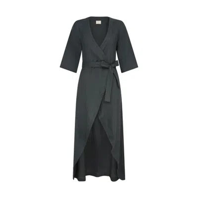 Women's Delphi Linen Evergreen Kimono Robe In Green