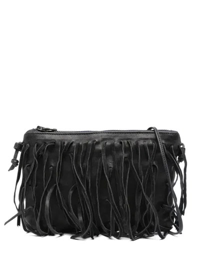 Small Fringe-detail Leather Crossbody Bag In Brown
