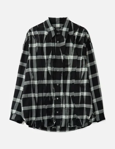 Asymmetric Pleats Check Shirt In Black