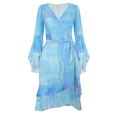 Women's Green Aqua Pebbles Ruffle Wrap Dress