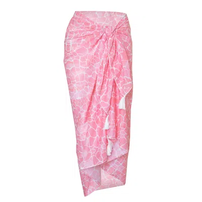 Women's Marble Mosaic Cotton Sarong - Red In Pink