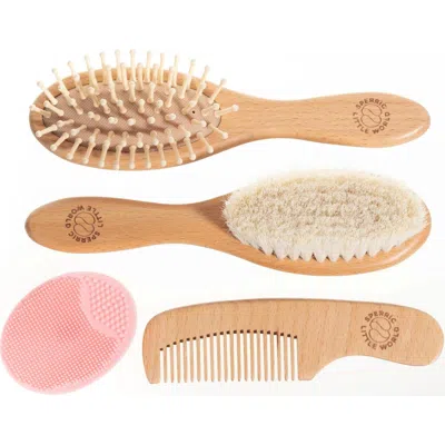 Kids' Wooden Baby Hair Brush With Soft Bristle And Comb Set In Pink