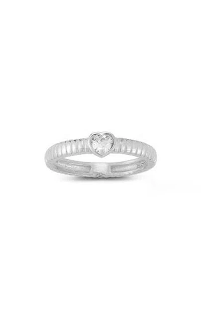 Silver Cz Heart Ring In Metallic