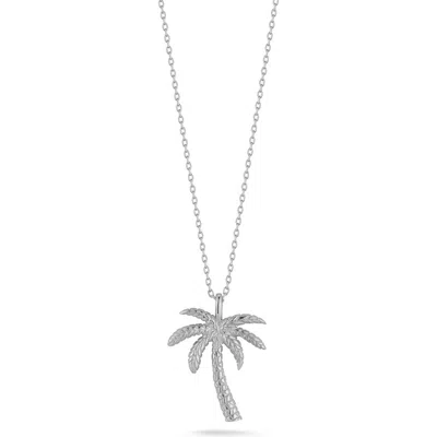 Sterling Silver Palm Tree Pendant Necklace In Metallic