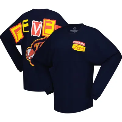 Women's Navy Indiana Fever Jumbo Print Oversized Cropped Long-sleeve T-shirt In Blue