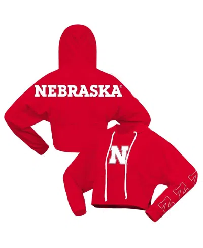 Women's Scarlet Nebraska Huskers Oversized Cropped Pullover Hoodie