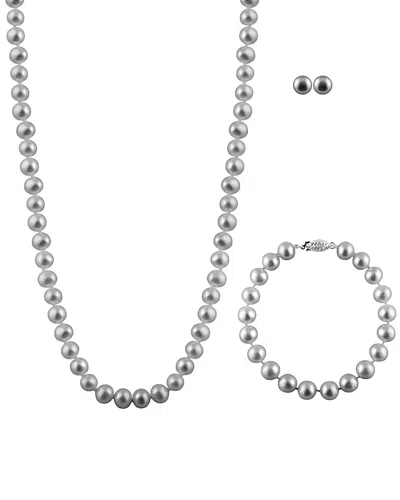 Silver 7-7.5mm Freshwater Pearl Bracelet, Earrings, & Necklace Set