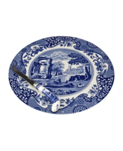 Blue Italian Cheese Plate & Knife 2-piece Set