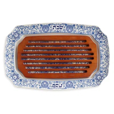 Judaica Challah Tray With Wood Insert In Brown