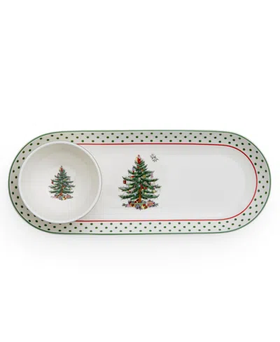 Christmas Tree Tiered 2-pc. Porcelain Chip & Dip Set In Green