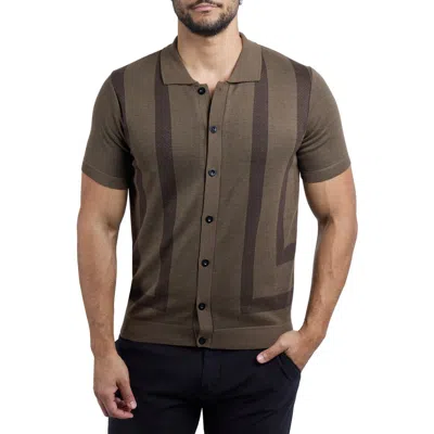 Textured Short Sleeve Button-up Sweater In Olive