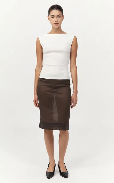 Leather Column Skirt In Brown
