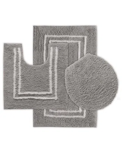 Tufted 3pc Cotton Bath Rug Set With Lid Cover In Gray