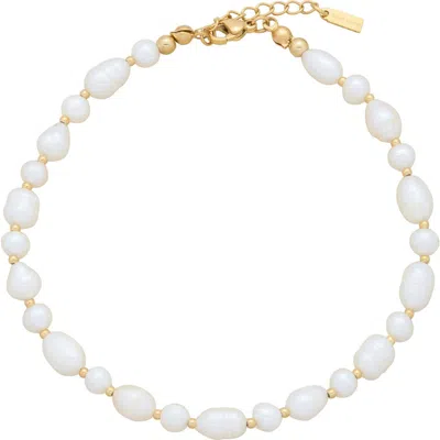 Freshwater Pearl & Curb Chain Necklace In White/gold