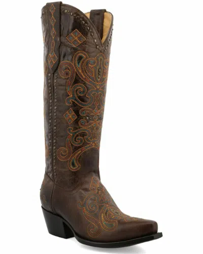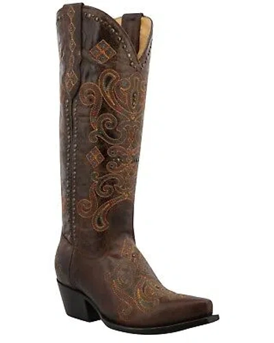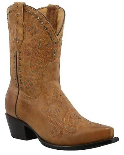 Pre-owned Women's Lockhart Embroidered Leather Western Boot - Snip Toe - Wbsn013 In Brown