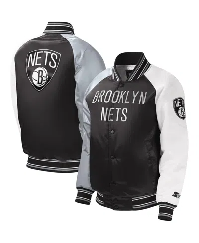 Kids' Big Boys And Girls Black Brooklyn Nets Raglan Full-snap Varsity Jacket
