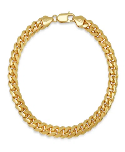 Unisex 14k Gold Plated Sterling Silver Diamond Cut Curb Link Chain Bracelet
