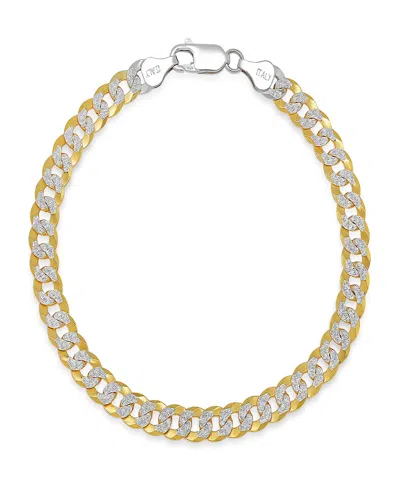 Unisex Two-tone Sterling Silver And 18k Gold Plated Diamond Cut Curb Link Bracelet
