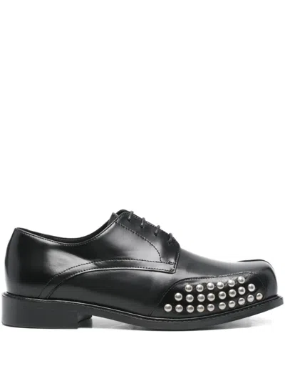 Stud-panel Square-toe Derby Shoes In Black