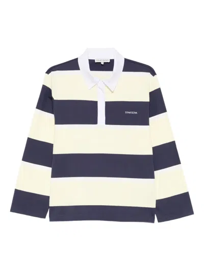 Stripe Smock Detail Organic Cotton Button-up Shirt In Blue