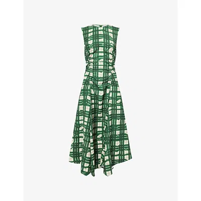 Womens Checkered Wave Checked Gathered Stretch-woven Midi Dress In Green