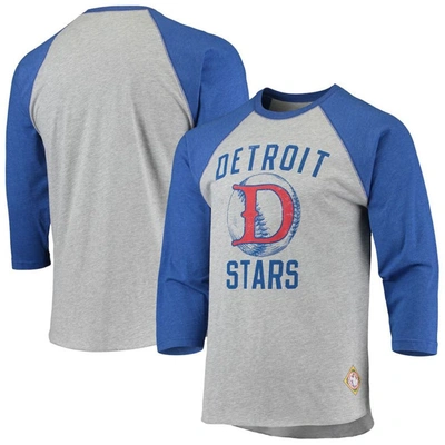 Men's Heather Gray, Royal Detroit Stars Negro League Wordmark Raglan 3/4 Sleeve T-shirt
