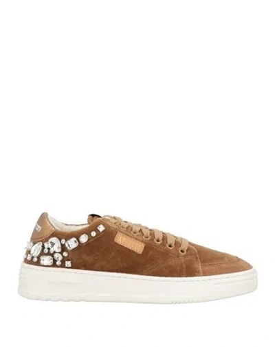 Woman Sneakers Camel Size 6 Leather, Textile Fibers In Brown