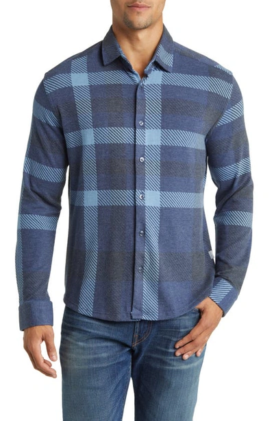 Big Plaid Tech Fleece Button-up Shirt In Navy