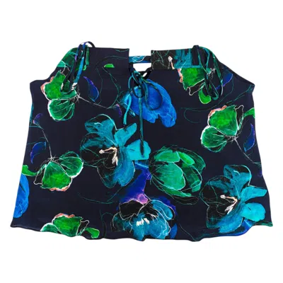 Women's Elegant Blue Floral Silk Top – One Of A Kind Crepe Silk Strappy Summer Blouse In Multi