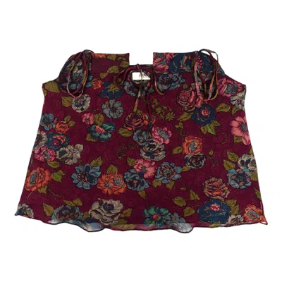 Women's Red One-of-a-kind Floral Silk Camisole - Magenta Tie-front Top In Multi