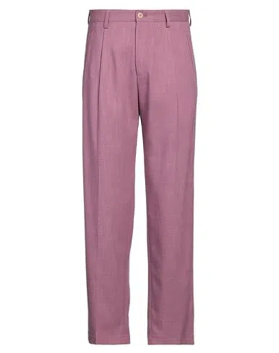Man Pants Mauve Size 36 Viscose, Polyester, Elastane In Purple