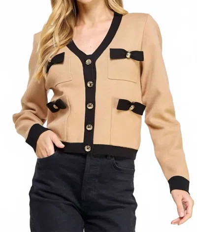 Color Block Bow Detail Knit Jacket In Tan/black In Neutral