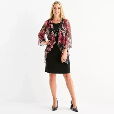 Womens Floral Faux-jacket Dress With Removable Necklace In Black