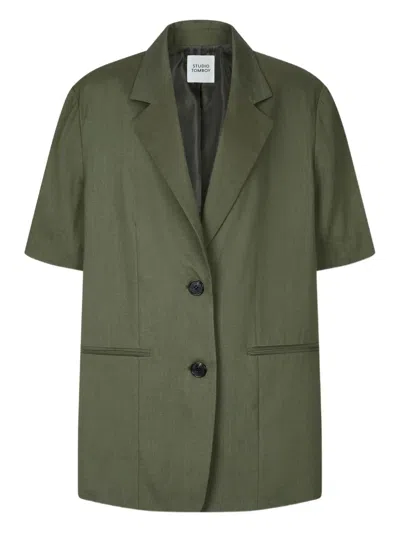 Short-sleeve Notched-lapel Jacket In Green