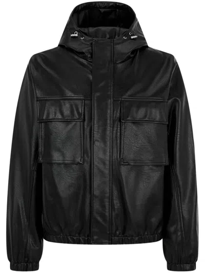 Faux-leather Hooded Jacket In Black