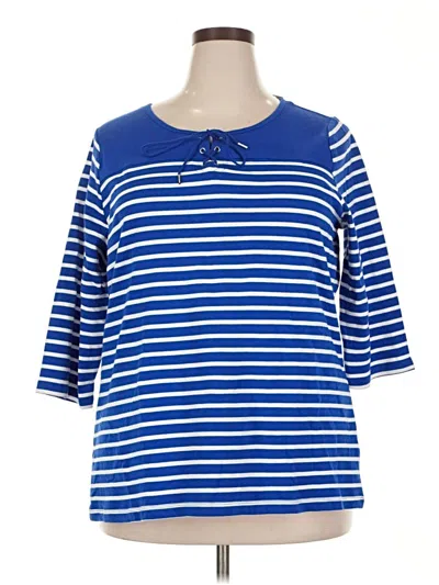 3/4 Sleeve Top Blue Boatneck Tops