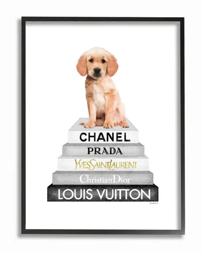 Resting Puppy On Glam Fashion Icon Book Wall Art In White