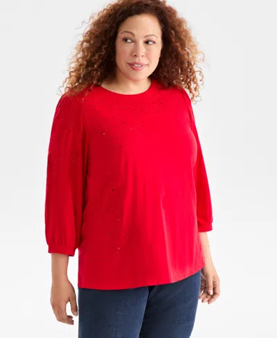 Plus Size Embellished Floral Crewneck Top, Macy's Exclusive In Black