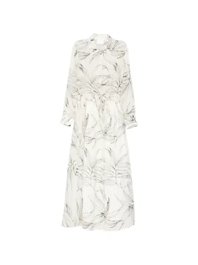 Floral Tied-waist Midi Dress In White