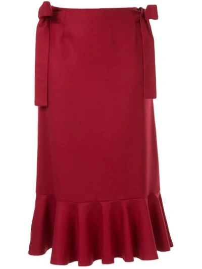 Bow Detail Midi Skirt In Red