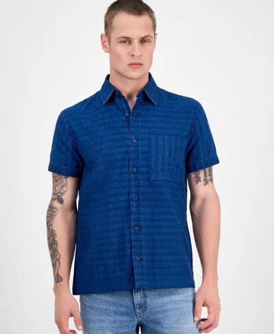 Men's Short Sleeve Striped Denim Button-front Shirt, Exclusively At Macy's In Blue