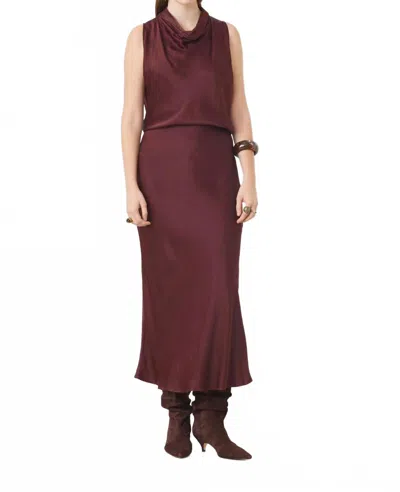 Satin Midi Skirt In Prune In Brown