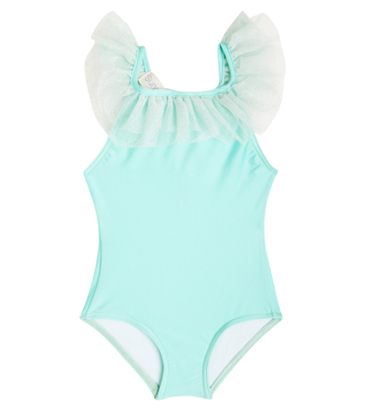 Baby Barcelona Tulle-trimmed Swimsuit In Aquamarine