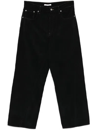 Straight-leg Charcoal Trousers With Classic Waistband And Subtle Texture In Black