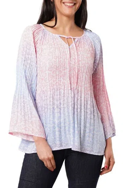 Tie Front Pleated Top In Multi