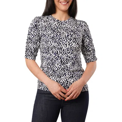 Pleated Tie Neck Short Sleeve Top In Multi