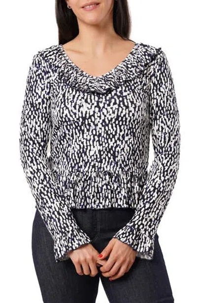 Ruffle V-neck Long Sleeve Top In Blue