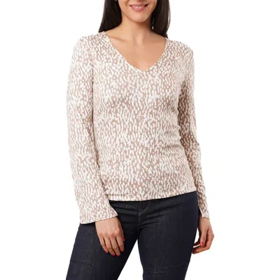 V-neck Long Sleeve Top In Brown