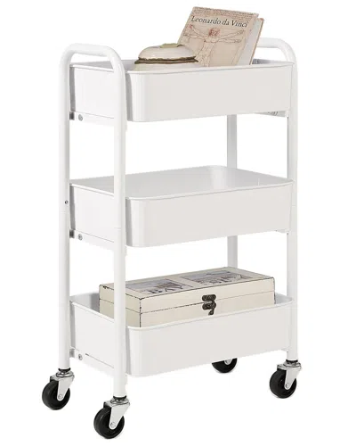 Sunnypoint Metal Compact 3 -tier Rolling Cart In White
